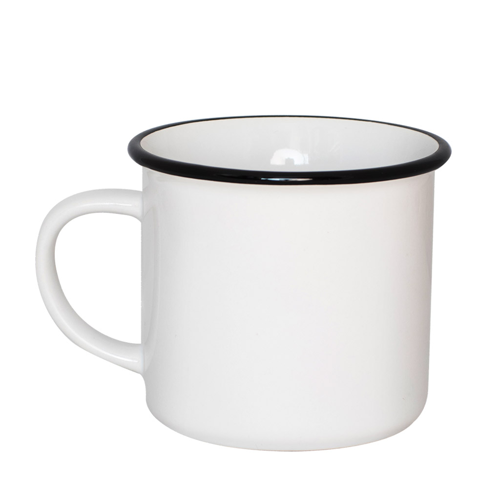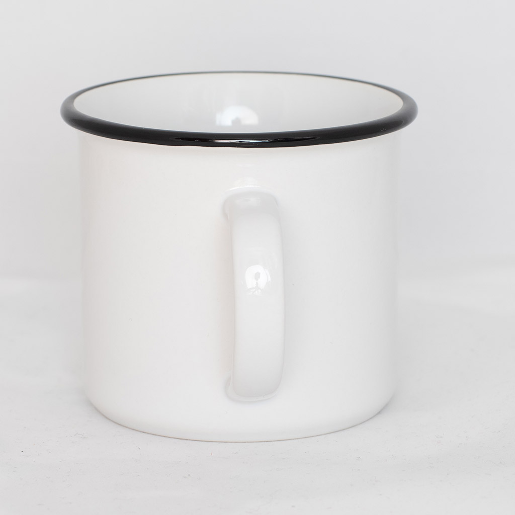 Keramický hrnek s černým lemem, průměrem 81 mm a objemu 236 ml potěší každého milovníka staré klasiky.